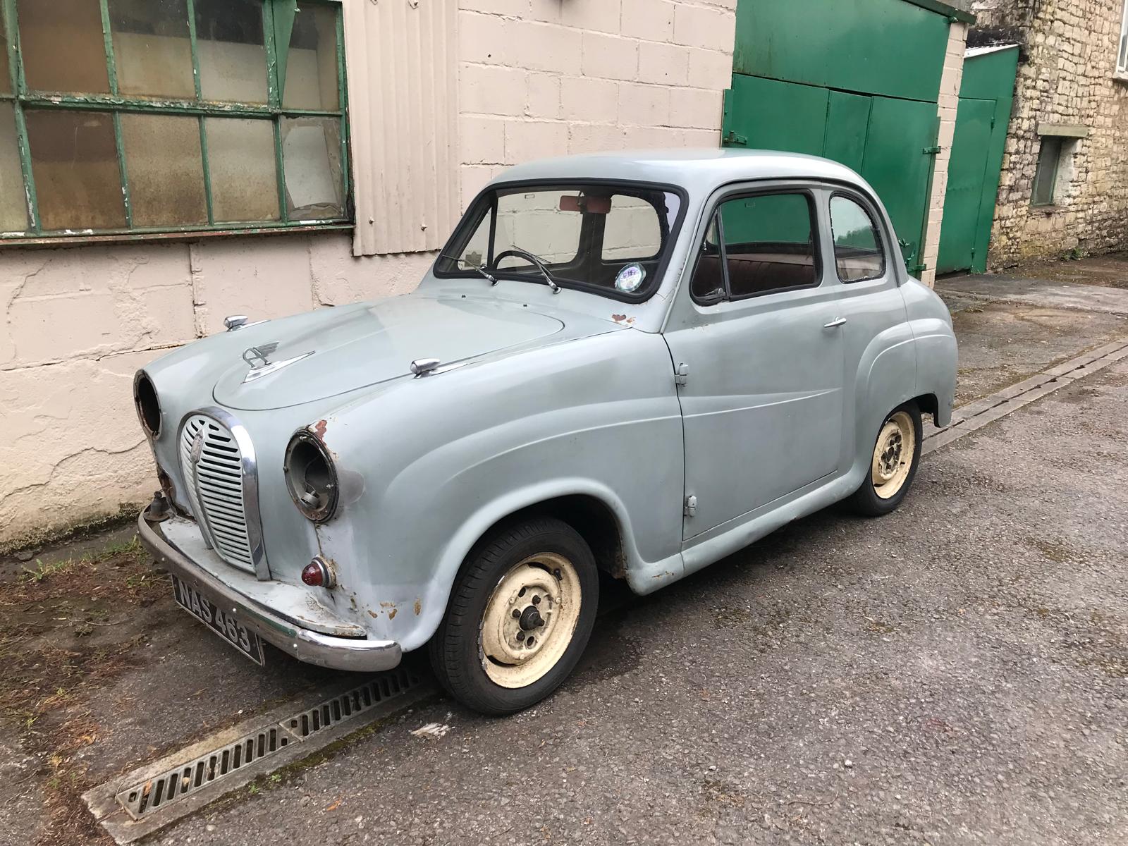A tweed grey Austin A35, with red leather interior, purchased by our company Gittings Classic and Modern for the purposes of getting running and to sell once work has been completed. Bought in November 2023 from Graham Goode who owns his own Ford Corsworth restoration company, and used to be a British touring car driver back in the day, so it’s got a rich history! Had been sat for 20 years in a barn, taken over by us and kindly restored carrying it’s original patina, will be sold as seen with our company, will come sold with a new service and fresh MOT and driven by the owner of Gittings Classic and Modern, Will Gittings