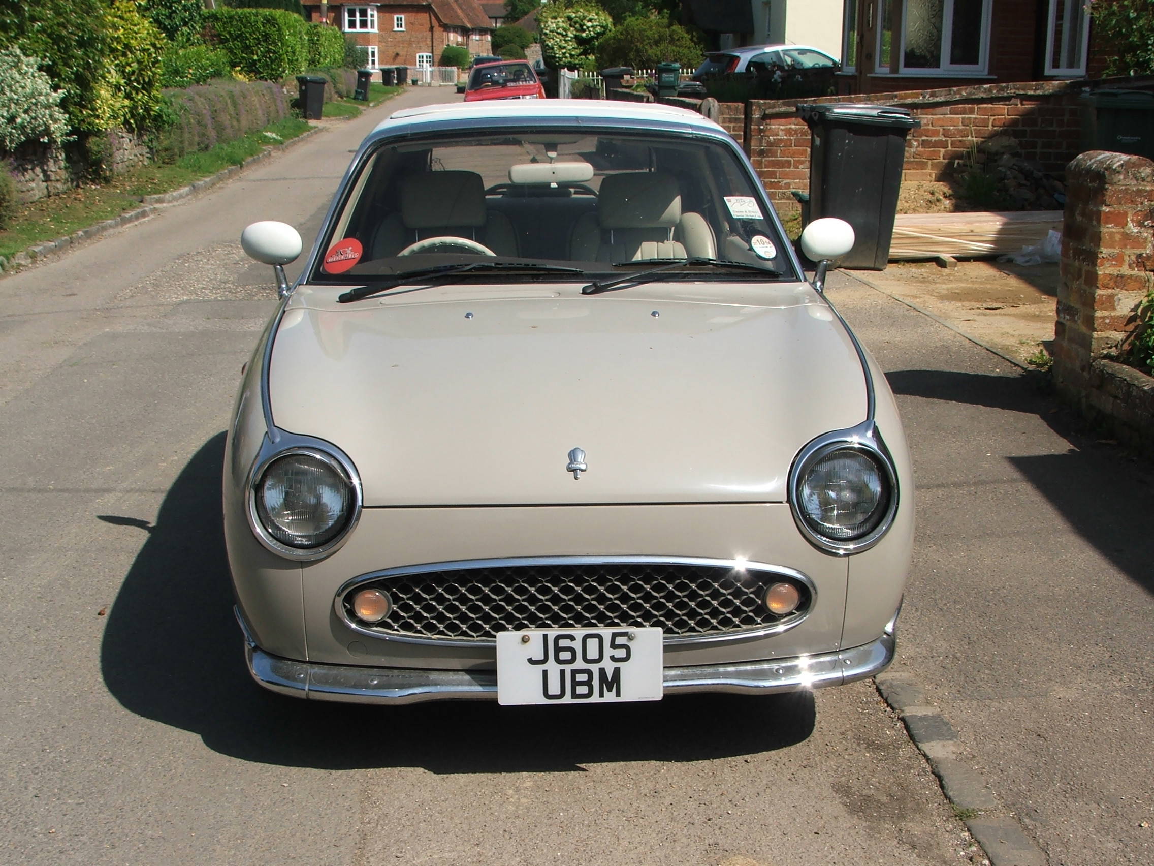 Owner and loved by Bunty Knight of Abingdon for the last 18 years. The Nissan Figaro was revealed at the 1989 Tokyo Motor Show and designed as a retro car reminiscent of the 1950’sIt originally came in only four colours representative of the four seasons namely emerald green for spring pale aqua for summer topaz mist for autumn and lapis grey for winter. Only 20,000 were ever produced in Japan with around 600 imported into the UK as a cult classic. Although looking retro it has many modern features for its time namely auto transmission, front wheel drive, power steering, air conditioning, built in sound system this together with its authentic “polo” wheels and retro features turned it into a cult classic much sought after. There is now a thriving market in the restoration and refurbishment of those Figaros that are left with many undergoing bright colour resprays and livery revamps to placate the ever increasing demand for this little |Retro Gem.