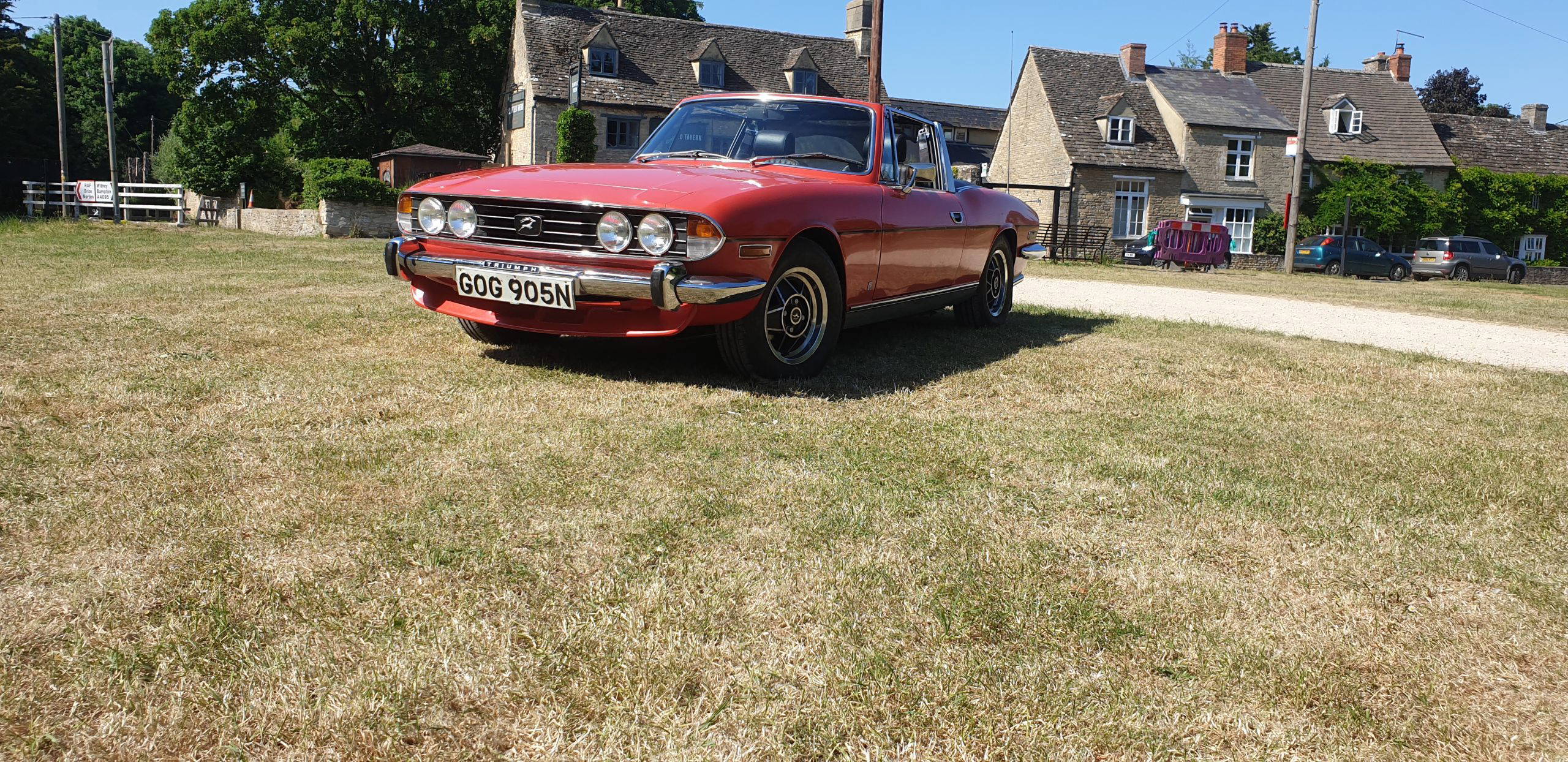 Triumph Stag 1974, Pimento Red, recovered in 2019 from a grage where the owner had parked it up in 1987 with a siezed engine with 49k miles on clock
