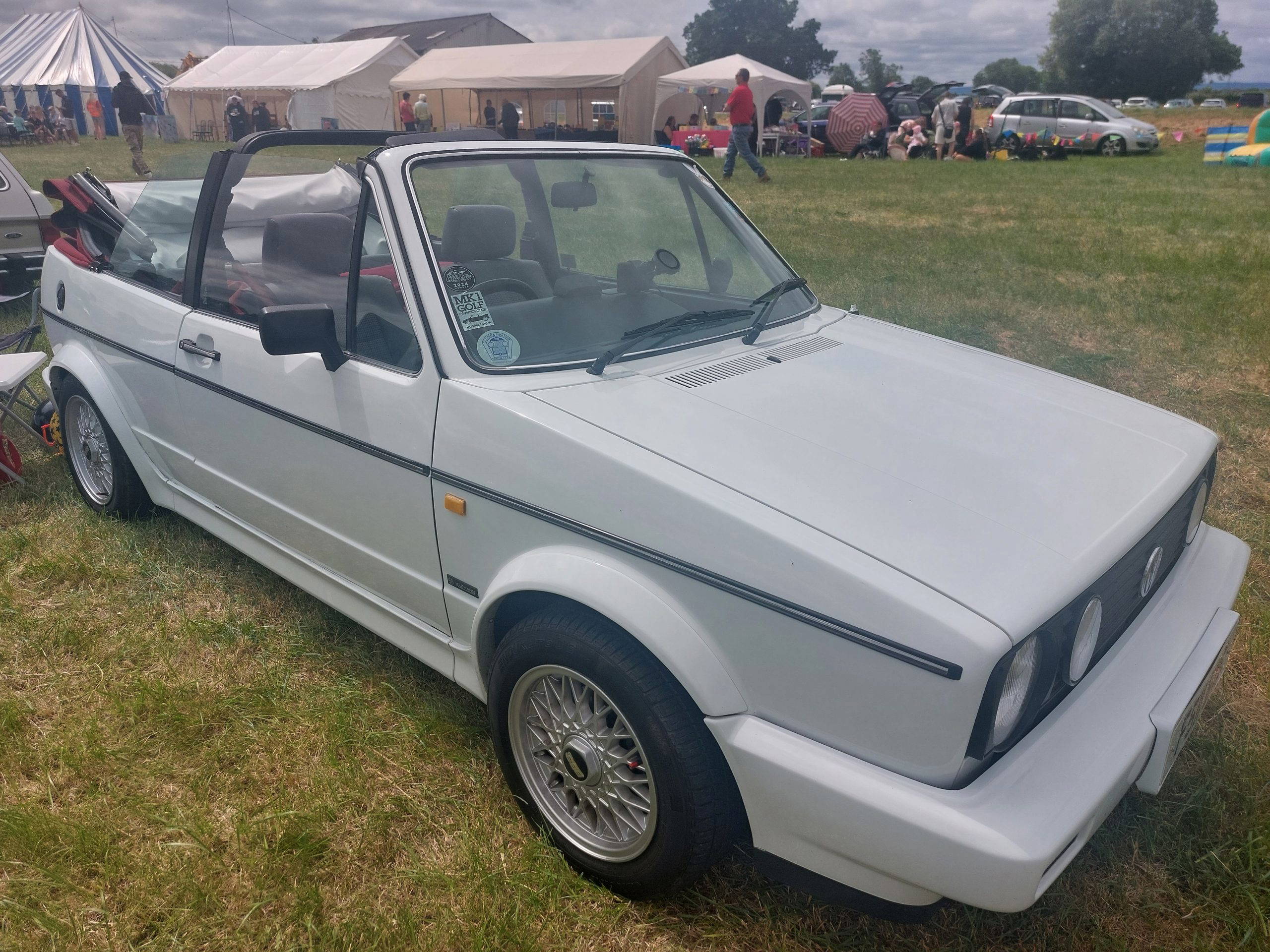 F511BYC is a 1987 manufactured VW Golf Mk1 Karmann Cabrio, 1.8, registered in August 1988. It is a limited-edition model with an automatic gearbox and just over 100K on the clock. I am the 4th owner, and the previous one from Neath, South Wales, had obtained it, free of charge, some 15 years previously from a friend. It had needed an awful lot of TLC – full strip down, body repairs, new radiator, replaced fuel pipes, wheels refurbished – it still rode on its original BBS alloys. Then it received a full body restoration around 8 years ago, which included a respray in the original Alpine White, plus a new red hood and liner.